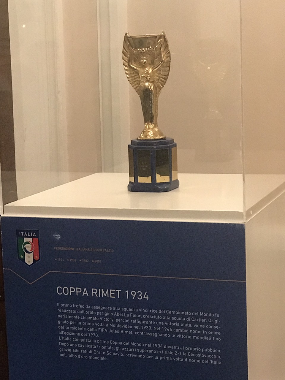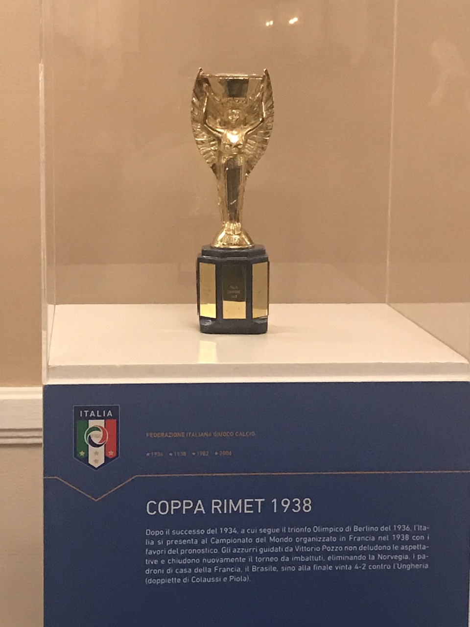 Kupat qe ka taljani per vete. Keto ka Italia ,keto na solli dhe ne per t’i pa. Neve na u tha qe ishin origjinale .Ate qe kupa i dorzohet fituesit te radhes e di,po me sa di,ai qe e fiton tre here,fiton te drejten per ta mbajt. Kurse per vitet 34,38 besoj qe s’kane qene pjese e ketij rregulli dhe Italia duhet te kete ato origjinale.