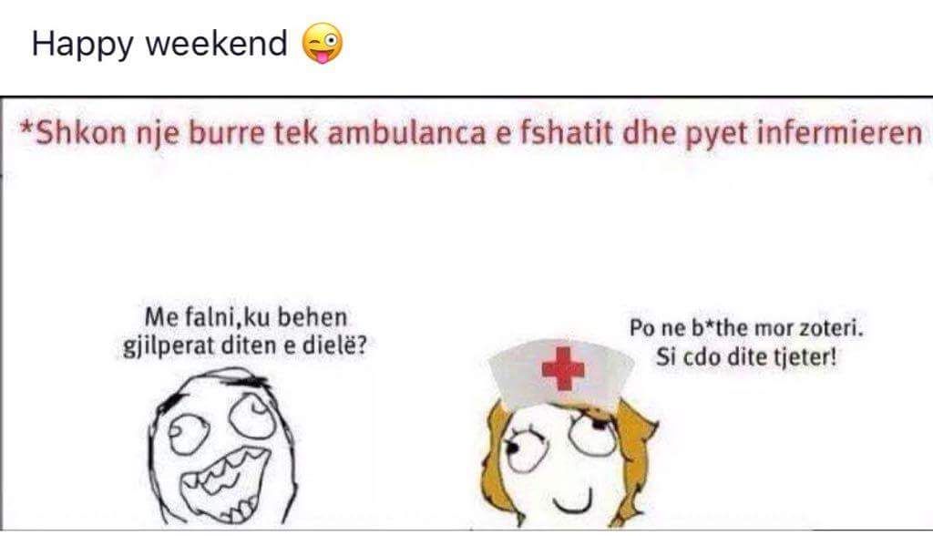 pyet gjykatesi te pandehurin : -pse e vrave gruan pas 30 vjetesh martese ??! -i pandehuri: si gjithe shqiptaret mo, duke i lene punet pas dore… he sot he neser… he sot he neser…