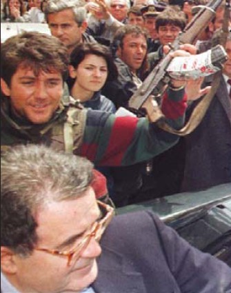 1992 eksodi masiv I 600 mij veteve padokumenta 1997 Prelude I deshtimit mashtrimit I vjedhjes vrasjeve se popullit 3000 te vrare 530 te zhdukur 2000 te te plagosur gjymtuar qindra shtepi te humbura mijra familje te ndara ne Shtetin dhe nen udheheqjen e PD me ish:- komunistet ne krye ! Me pas : shpetimi I kombit nga Forcat Paqe Ruajtese ! Miliona dollare te humbur ! Edepsez ! Mascara ! Mashtrues ! Hajdut ! Te pa cip !