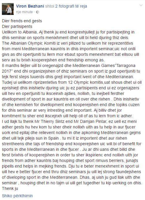 Albanian ingenuity. Kur nuk flet anglisht dhe te duhet te mbash nje fjalim, shkruaji ne shqip: