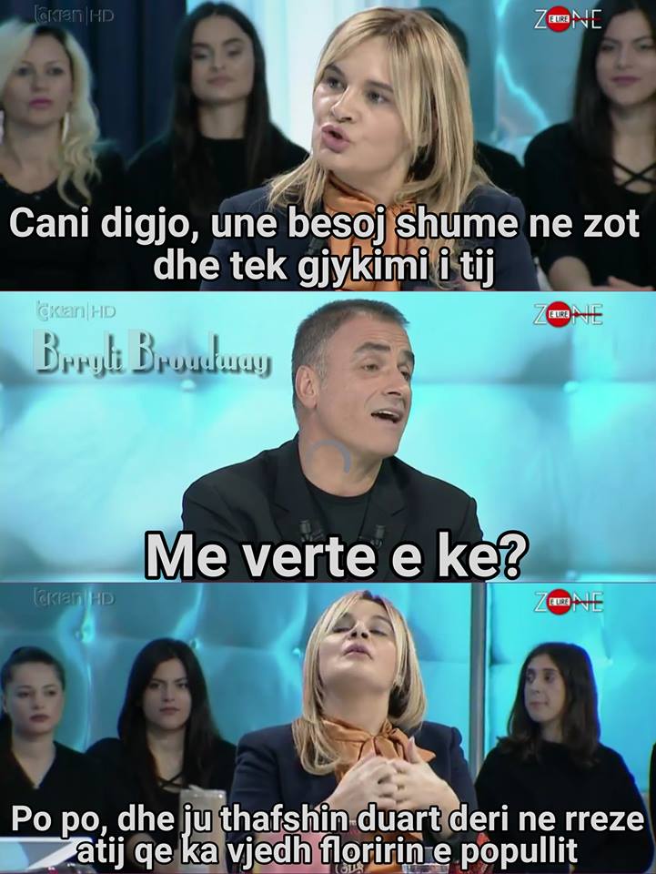Fiks ajo qe po them une se po thua hahaha vetem sepse ti genjen veten me perdhune mendore. E ke instrument mbijetese. E kuptoj qe te ka hyre ne nenndergjegje dhe nuk e ben dot dallimin.