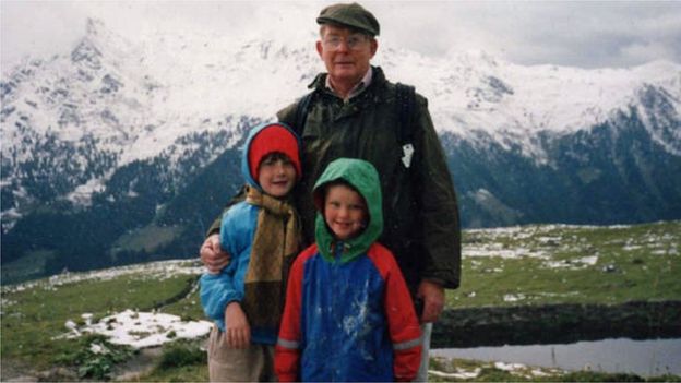 Reg Green, në Alpe, me fëmijët, Eleanor dhe Nicholas
