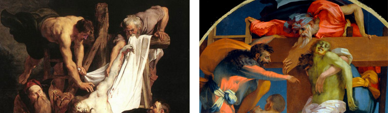 Të dy autorët kanë midis tyre shumë ndërlidhje të jashtme dhe të brëndëshme. Ndërlidhjet e jashtme: janë toskanë doc, të lindur në të njëjtin vit (1494), Deposizione-t e tyre janë pikturuar në të njëjtët vite, njiheshin mirë midis tyre sepse kishin të njëjtën mësues: Andrea del Sarto, i cili është rilindasi i fundit. Sipas del Sartos nuk mund të shkohej dot më përtej përsosmërisë së trinitetit të shenjtë Mikelanxhelo-Rafael-Leonardo, dhe mund të vazhdohej të pikturohej vetëm duke bërë interpretime të ndryshme sintetike midis platiçizmit mikelanxheleske, sfumatos leonardeske dhe ndjenjës së masës rafaeleske. Përderisa matej me përsosmërinë në art, dhe jo me përsosmërinë e natyrës, siç bënin klasikët dhe mjeshtrit rilindës të adhuruar prej tij, Andrea del Sarto e përmbante në vete dinamitin manierist, megjithse pa kapsollë. Nga pikpamja e progresit, i takonte nxënësit e tij të ishin kapsolla, ndërsa nga pikpamja psikoanalitike, nxënësve u takonte të vrisnin atin, dmth mësuesin e tyre, të skartonin mjeshtrin e fundit rilindas dhe të bëheshin manieristë.