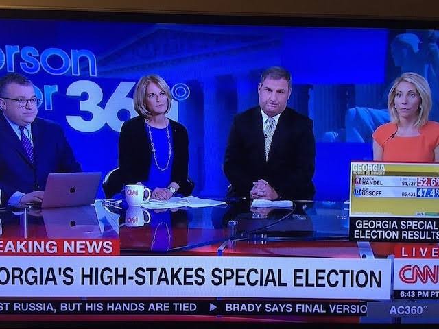 Momenti kur CNN po behej gati te shpallte fituesin ne garen per kongres ne shtetin e Georgia-s.