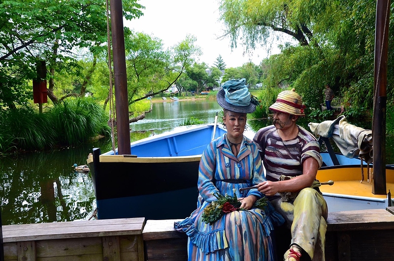 Moza ha ha Qemolo, shife kte qe eshte piktura me e modhe impresioniste ekzistuese, si ekspresion psikologjik ka te gjithe hirin feminil te epokes moderne shterim-trishtim-kotesi, ndersa si ide kompozuese nga çfar ndodh ne planin e dyte me figurat ngambrapa, deshmon per Ardhjen e Epokes t’Modhe Ngambrapamoderne (e ka tere ndjenjen e Vjeshtes brenda, pa treguar asnje gjethe vjeshtuke ngjyre ndryshk) (kliko siper figures te shikosh edhe figuren e mashkullit te reflektuar ne pasqyre):