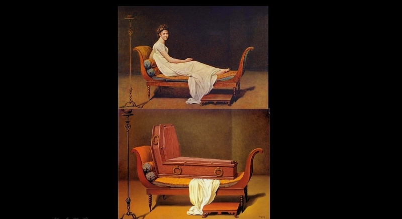 Dasara dolçe feminile ha ha, meqe e gjete origjinalin ha ha te pikçerit ha ha te Margritte, gjeje edhe kush ka qene ne praktike madama ha ha e ulur ne divan ha ha dhe kush shkrimtari i moth ha ha e ka pallu ne praktike ha ha.