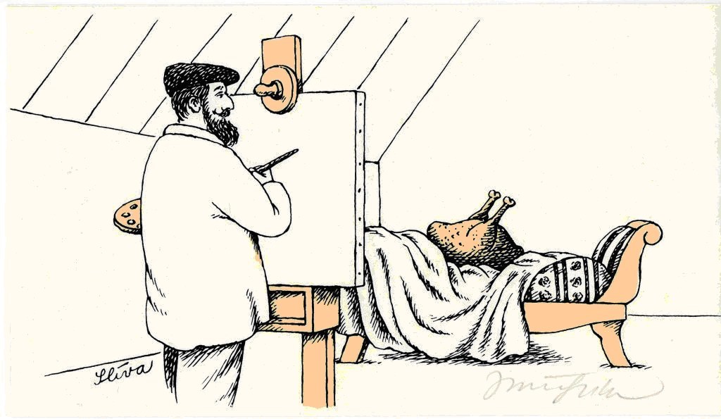Pikçeristi me i modh qe e ka trajtu te teme eshte Caravaggio, i moth fare, me kete fillon moda e artistit modern kurvar dhe kriminel, eros dhe thanatos. Ky qe thu ti Moza, bente kerdine ne kurva, e pastaj zgjidhte njeren si model per Marien e paperlyeme. Futej ne nje mejhane, gjente ndonjerin dhe i thoshte: “Ç’ke qe mshef?”, dhe neqofte se ky njeri vazhdonte ta shifte, ai i thyente kafken me shishe birre, dhe arratisej nga qyteti, Roma psh. Pastaj i kerkonte falje Papes, Papa e falte, dhe ky kthehej ne Rome dhe pikturonte nje krisht - sigurisht ga model pederast - me titull: Fali se nuk dine ç’bejne!