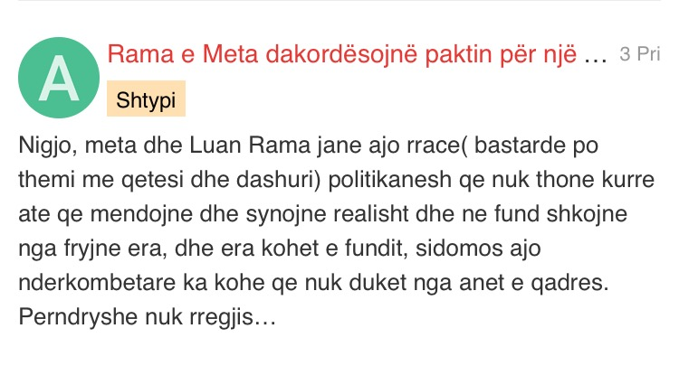 E turpshme nese eshte e vertete sepse 1.duhet te ishte ne burg 2.ka vertetuar qe nuk eshte manaxhues,zgjidhes i mire i situatave…ky do beje gjjthmone cfare thote shefi edhe nese eshte kundra ligjit…si ne rastin e 21 janarit.