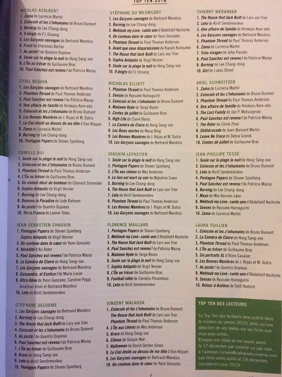 Mua më beri pershtypje se, në listat e top10 te fund-vitit 2018 të 13 gazetarëve/kritikëve te revistes ne fjale, “The wild boys” nuk figuron pothuaj vetem tek ajo e Jean-Philippe Tessé, zv. kryeredaktor dhe nje nga me te ‘vjetrit’ gazetarë te saj (edhe pse i ri ne moshë).