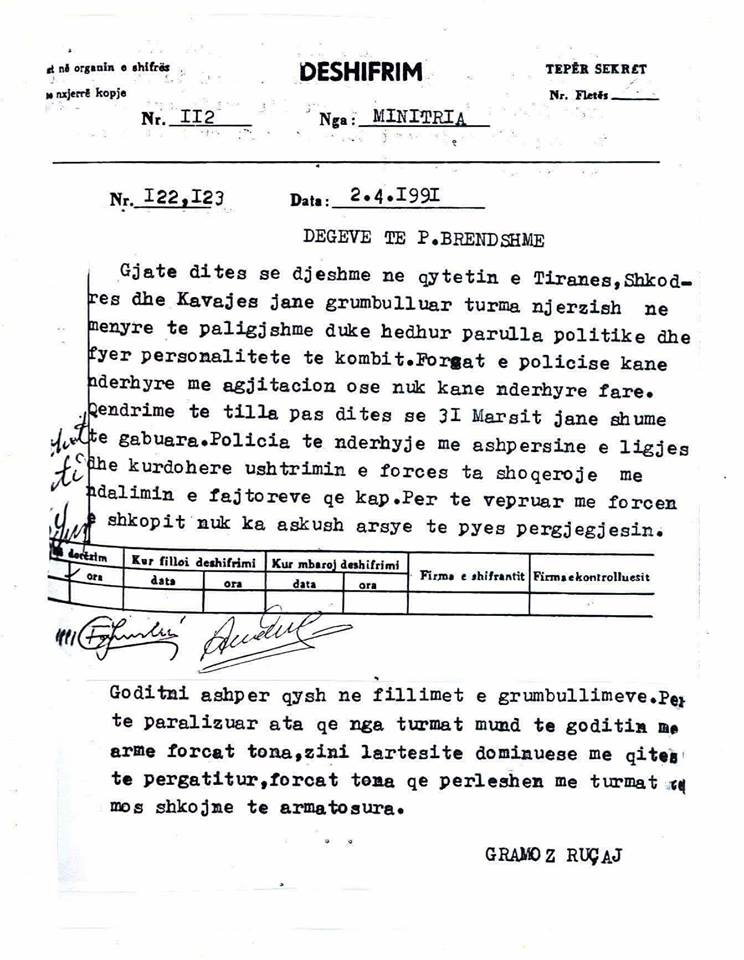 Dakumenti asht fallcifikim, nji provokim i qarqeve te huja! Njaty duket kjart se eshte shtyp nga nji anfalbet qi nuk kupto gjuhen shqype. Edhe emri i ministrit duket sikur asht njit me vinovil dhe stonon me tekstin. Pik.