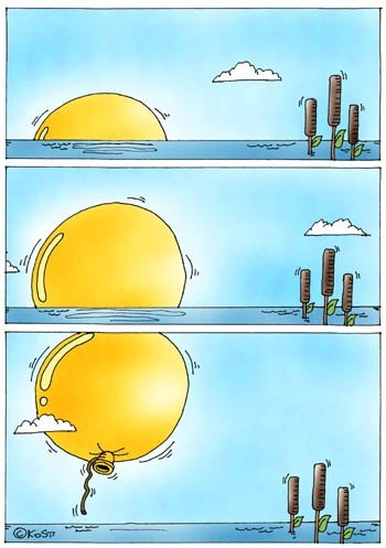 nese peshku del nga thellesia per nje çast ne siperfaqe te ujit sa per te bere nje fotografi, nga ta kuptoje se dielli ne horizont po lind, apo po perendon? Ose thene ndryshe, nga ta kuptoje qe gomonia po shkon drejt Oksidentit, apo drejt Orientit? Ose thene akoma me ndryshe: drejt Njerit xhep, apo drejt Tjetrit xhep?