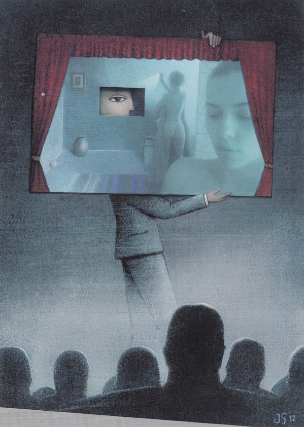 However, as we noted above, painting cartoons gradually began to conquer the space of comics in the late twentieth century. It is in these works that manifestations of surrealism can be seen. Such cartoons are not constructed according to the laws of humor. Semantic contents of these works are based on a mixing of concepts. This does not make talking about these cartoons that they do not have “grotesque, ironic, buffoonery”. From this perspective, we can recall some cartoons by artists such as Alessandro Gatto, Andrej Popov, Erzy Glushek, Muhittin Koroglu, Florian Doru Crihana, Mahmoudi Houmayoun and others. In the works of these masters of cartoons we can easily discern echoes of surrealism.