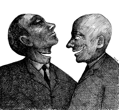 pastaj nje bole vlen tjetren. E çfar dallimi ka midis nje bole te djathte nga nje bole e majte? Me konkretisht: çfar dallimi ka midis nje peshku te djathte dhe nje peshku te majte? Asnje dallim nuk ka, te dy shajne njeri tjetrin nga nona! Vetem bolet mendojne se ka dallim, dhe per kete arsye jane bole. Vetem nje bole mendon se dallohet nga te tjere, ne saje te te qenurit bole.