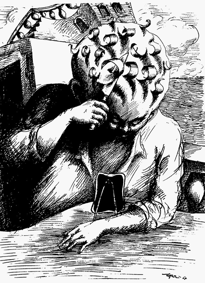 Ti u lutshe qe Edvini te mos ndronte mendie se do e conit ne saterr. Nuku e ndryshoi menien Edvini dhe si minj vrapuat per shpetim poshte fustanit te florinjte te gruas se Monit. Paskeni qen te morr fund. As mua nuk me shkonte menia qe do ju degjeneronte Edvin frykanjosi ne ket far feje. Jazek!