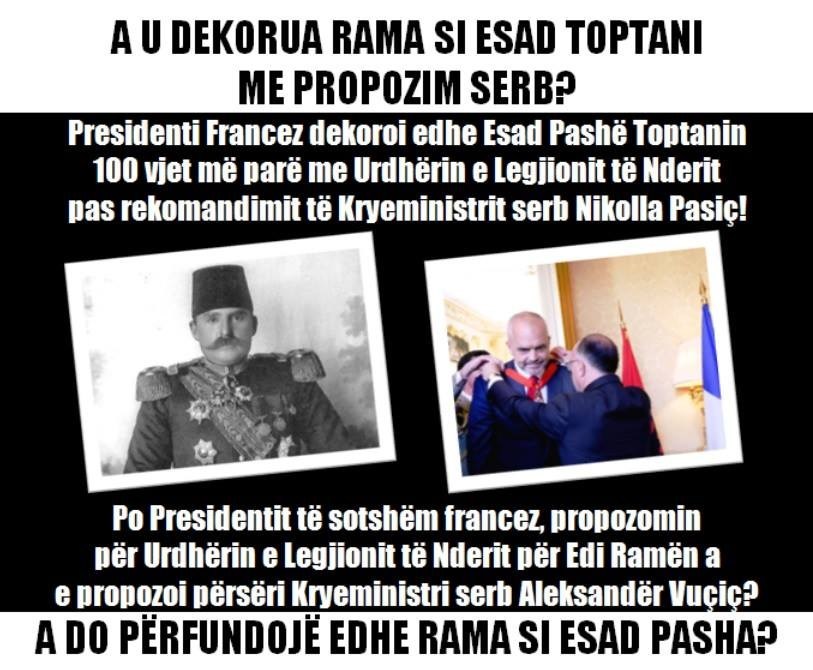 Lexojeni pak kete link per te kuptuar se cfare njerezish i jane bashkuar kesaj opozite te dhjere. Jo vetem analfabet, por edhe pa llogjiken elementare te te menduarit. Budallai, i kerkon llogari Rames se pse i dha medaljen kryetari i shtetit francez. Pika qe sju bie injorante.