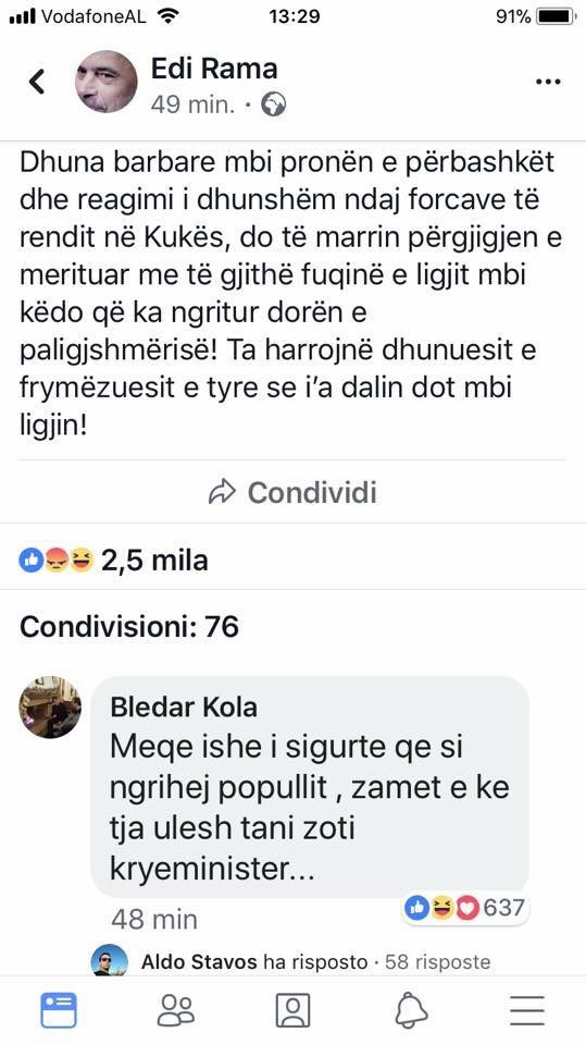 ne te semes edhe Rama, se tha se shqiptaret jane si k… qe nuk cohen me urdher te Berishes se u nuk u ngrefet… ja mire qe u ngrehet atyre te Kukesit.