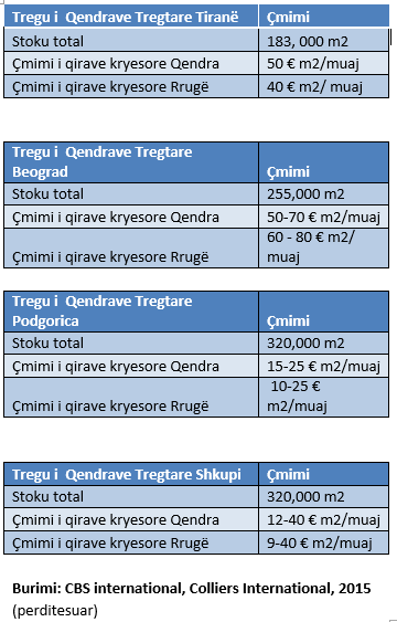 Qiratë në qendrat tregtare e rrugë, Tirana dhe Beogradi më të shtrenjtët