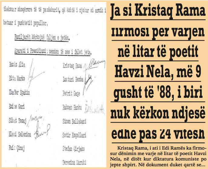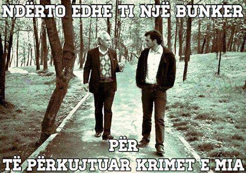 Duhet te jete e hidhur ama per kategorine e te vuajturve apo te familjareve te te vuajturve qe pikerisht nje kryeminister qe shprehet per çfaredo lloj teme lart e poshte facebookerave dhe twitterave,te mos shprehet per pergjegjesine (qofte dhe simbolik faji) e babait te tij ne vuajtjen e te tjereve dhe njekohesisht te ngreje bunkere “artistike” qe me se shumti jane produkte te vetperfshirjes dhe vetsherbimit te artistit-politikan Rama.