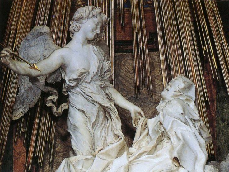 Shën Tereza është përshkruar në gjëndje ekstaze të dashurisë hyjnore: statuja është tepër shprehëse dhe plot lëvizje. Një engjëll me një shigjetë në dorë godet gjoksin e shenjtores, si për t’i tejshkuar zemrën, ndërkohë e sheh duke qeshur me butësi. Çfar arti hyjnor! Çfarë epshi! Murgu zemërmirë, që mendonte se nuk e kuptonim na e shpjegonte statujën, përfundoi duke na thënë: “Mëkat që kjo statujë të kujton menjëherë dashurinë profane” - Stendal.