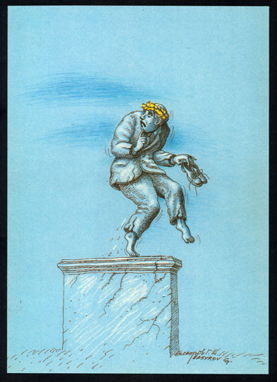 "Gjeniu mbytet në delirin narcisist dhe egocentrizmin e masës, në zilinë barazimtare, në të drejtën e barabartë të njohjes së qenies gjeni dhe në komplotin e mediokritetit të organizuar.