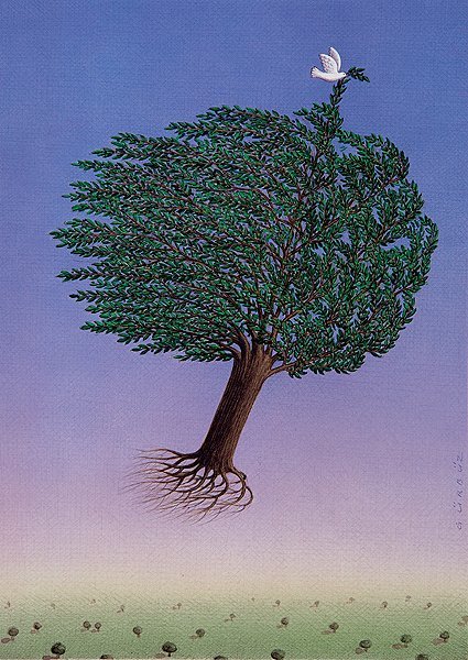 Po edhe simbolin e paqes qe mban ne goje pellumbi, edhe ne shenjester, sikur nuk shkon i modho. Se i thone qe te prishen ekuilibrat.